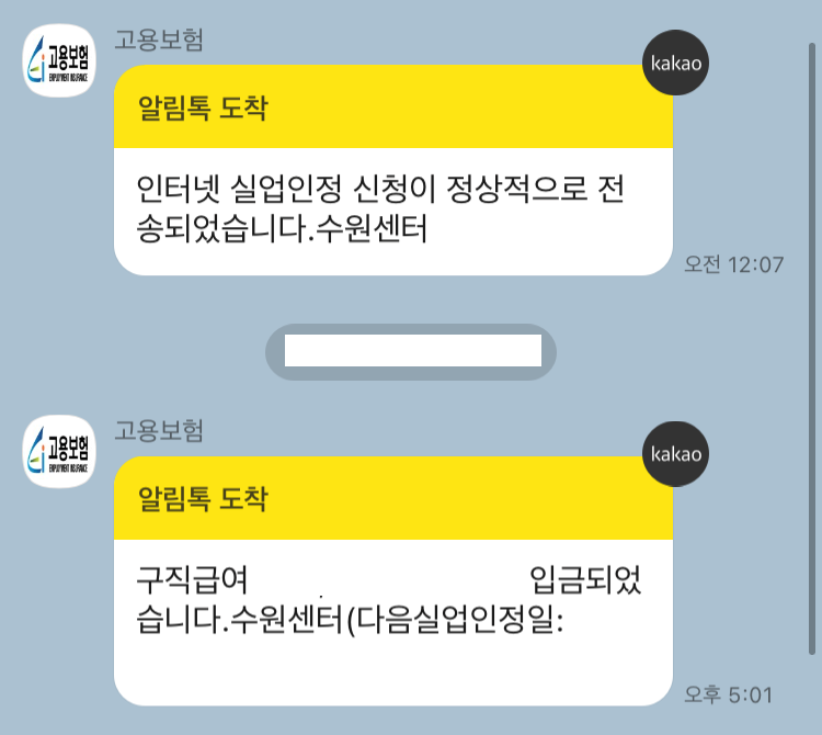구직급여가 정상적으로 신청되고 수정이 필요하지 않은 경우 다음날 바로 구직급여가 입금되며, 다음 실업인정일을 안내받을 수 있다.